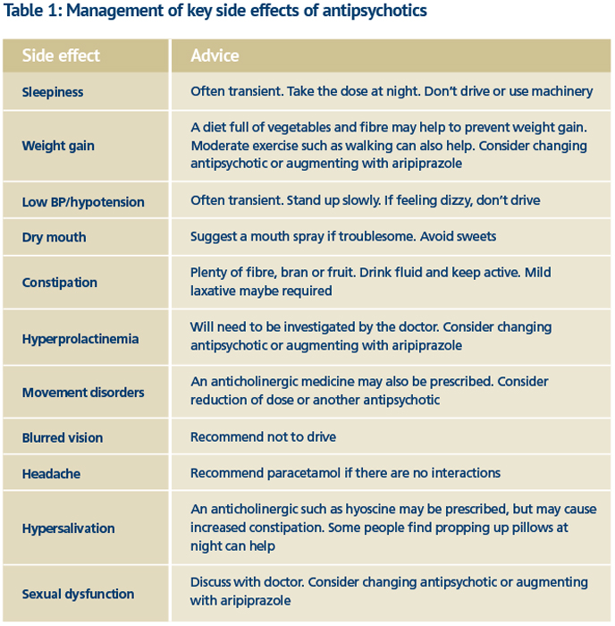 - Give advice on side effects and how to minimise or treat them (see Table 1 below).