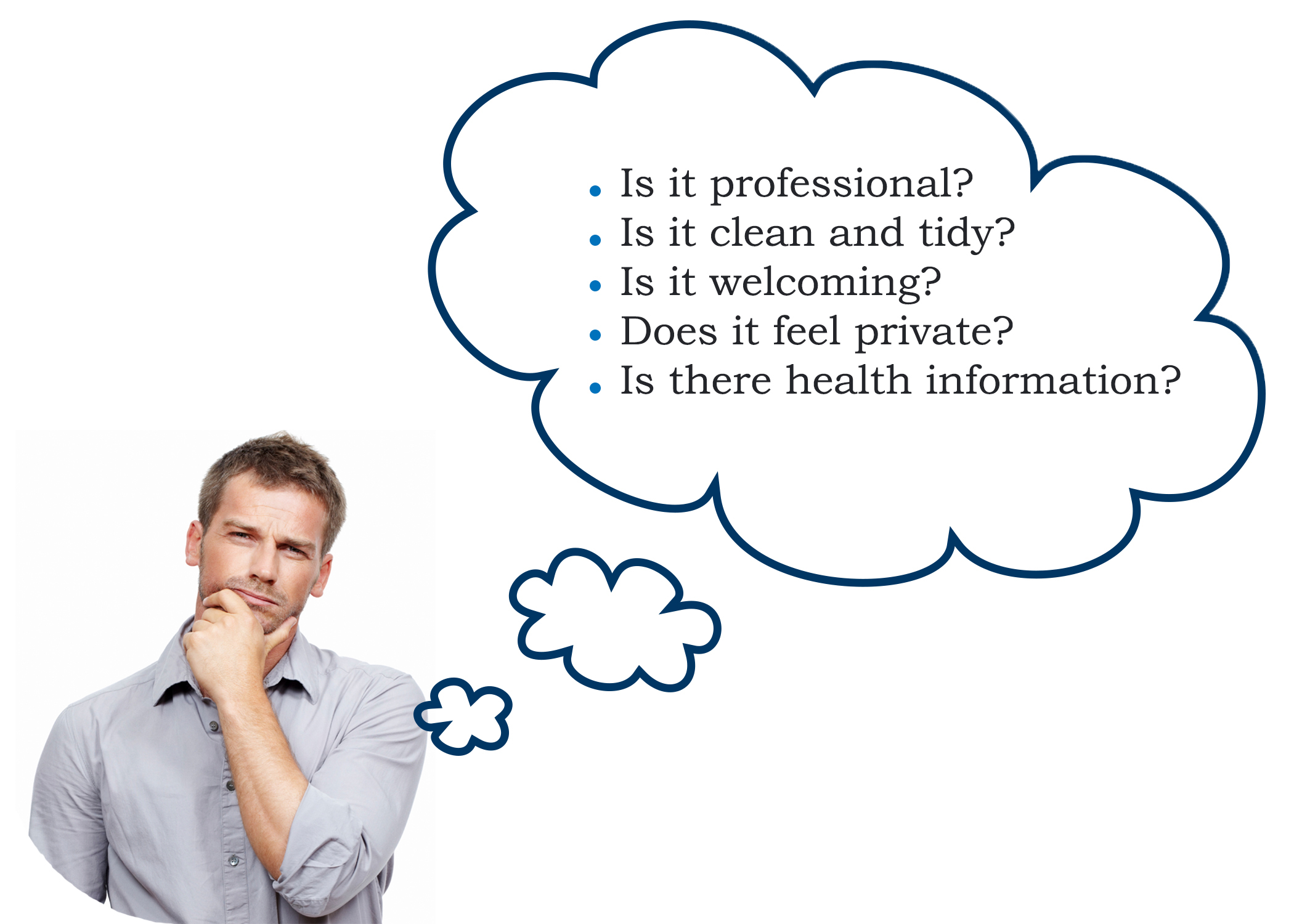 Go into you consultation room, and look carefully from a customer's perspective: